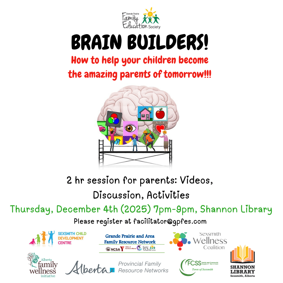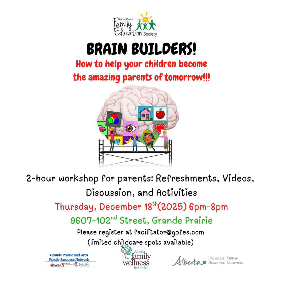 Join the Grande Prairie Family Education Society for Brain Builders!, a 2 hour workshop designed to