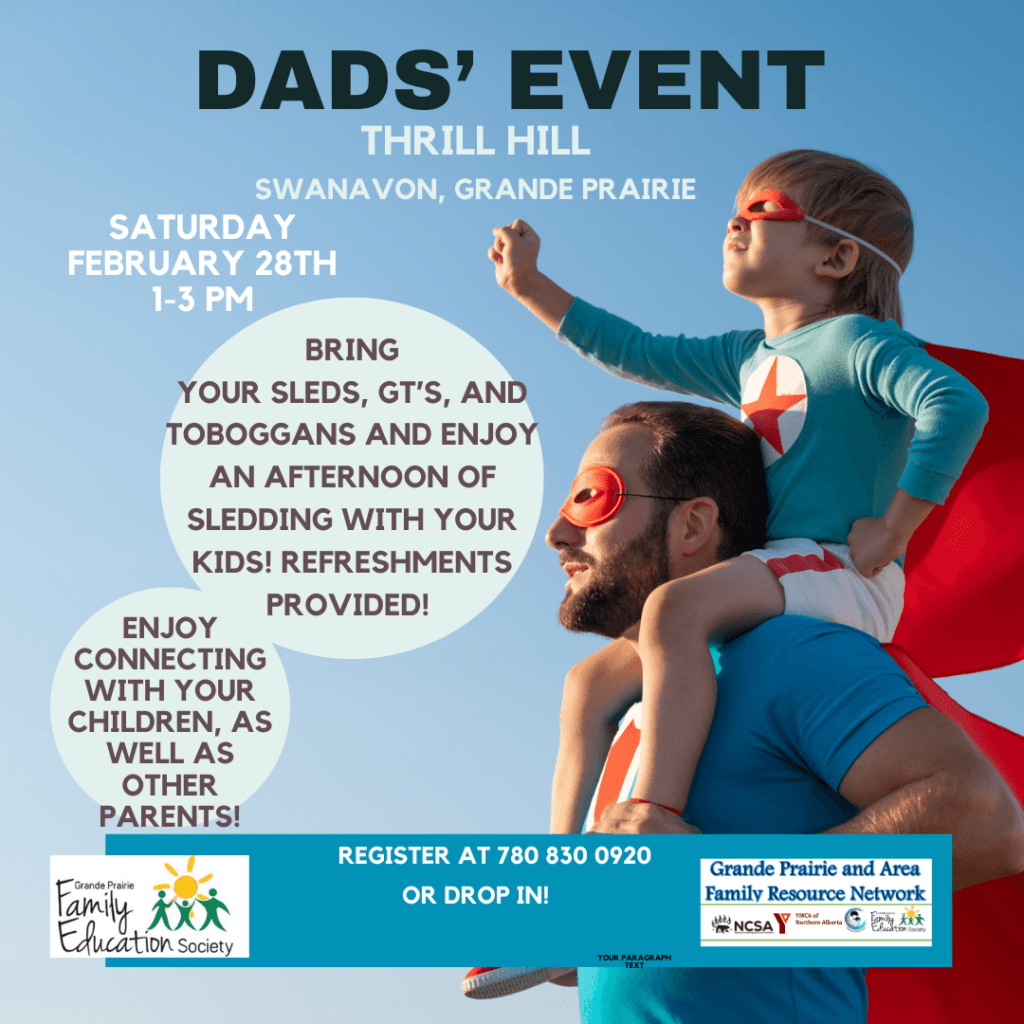 Enjoy connecting with your children, as well as other parents! Bring your sleds, GT’s, and toboggans and enjoy an afternoon of sledding with your kids! refreshments provided!